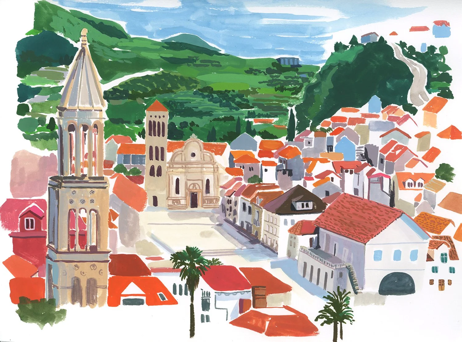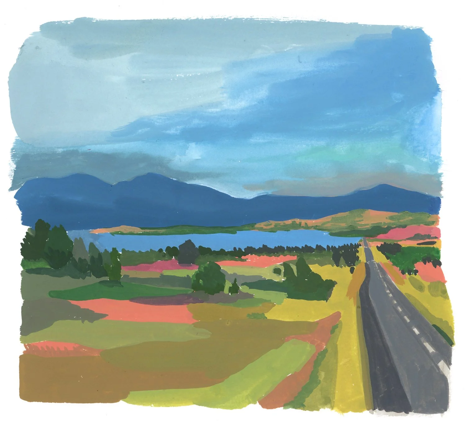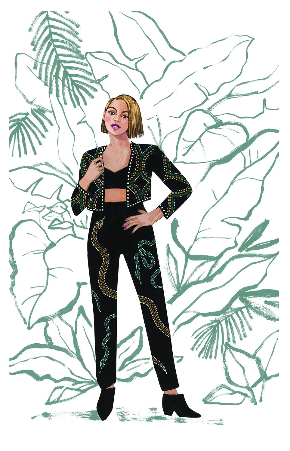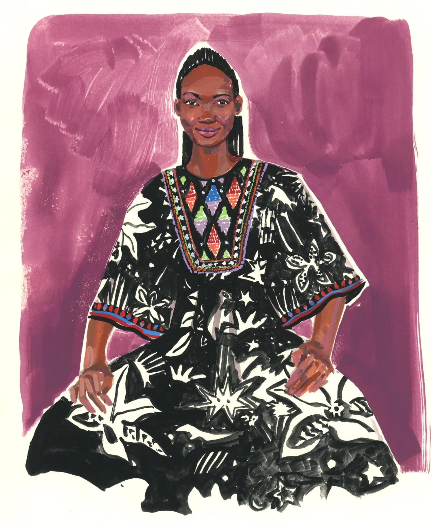 Farm Rio skirt with Dansko sandals. Gouache on paper.