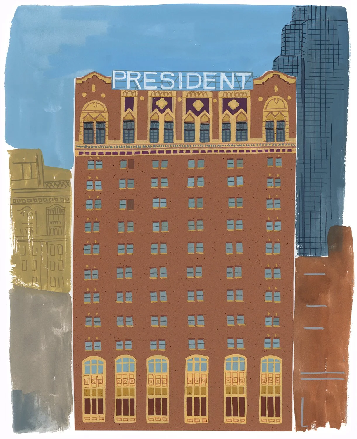 Savoy Restaurant in Kansas City, MO. Gouache on paper.