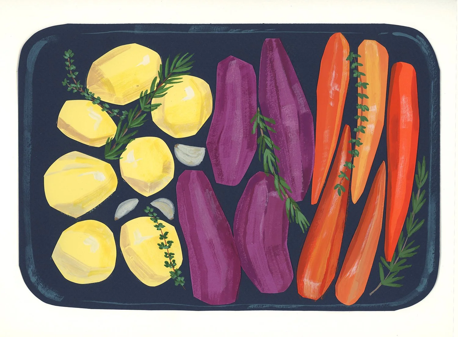 Root Vegetable and Mushroom Soup. Gouache and color paper