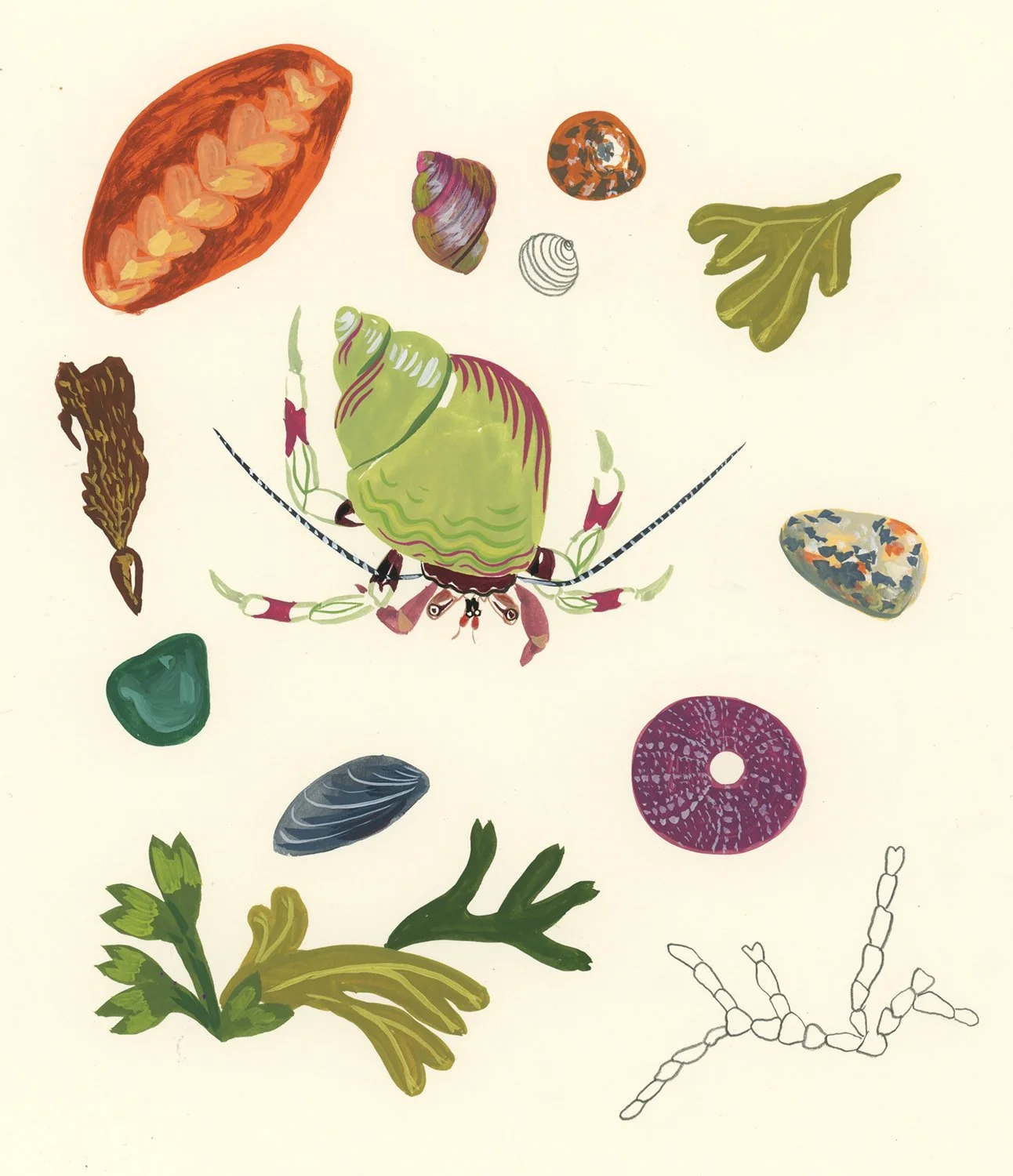 Tide Pool with Starfish and Anemone. Gouache on paper.